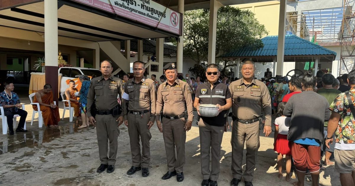 พ.ต.อ.ณกฤช ใจรักเรียน ผกก.สภ.ทุ่งเบญจา พร้อมด้วย พ.ต.ท.พูลทรัพย์ ทหราวานิช รอง ผกก.สอบสวนฯ,พ.ต.ต.ทินดรัณ หอมจันทร์ สวป.ฯ ข้าราชการตำรวจ สภ.ทุ่งเบญจา ร่วมพิธีสรงน้ำพระเนื่องในเทศกาลวันสงกรานต์ ณ วัดศรีเมือง ต.ทุ่งเบญจา อ.ท่าใหม่ จ.จันทบุรี